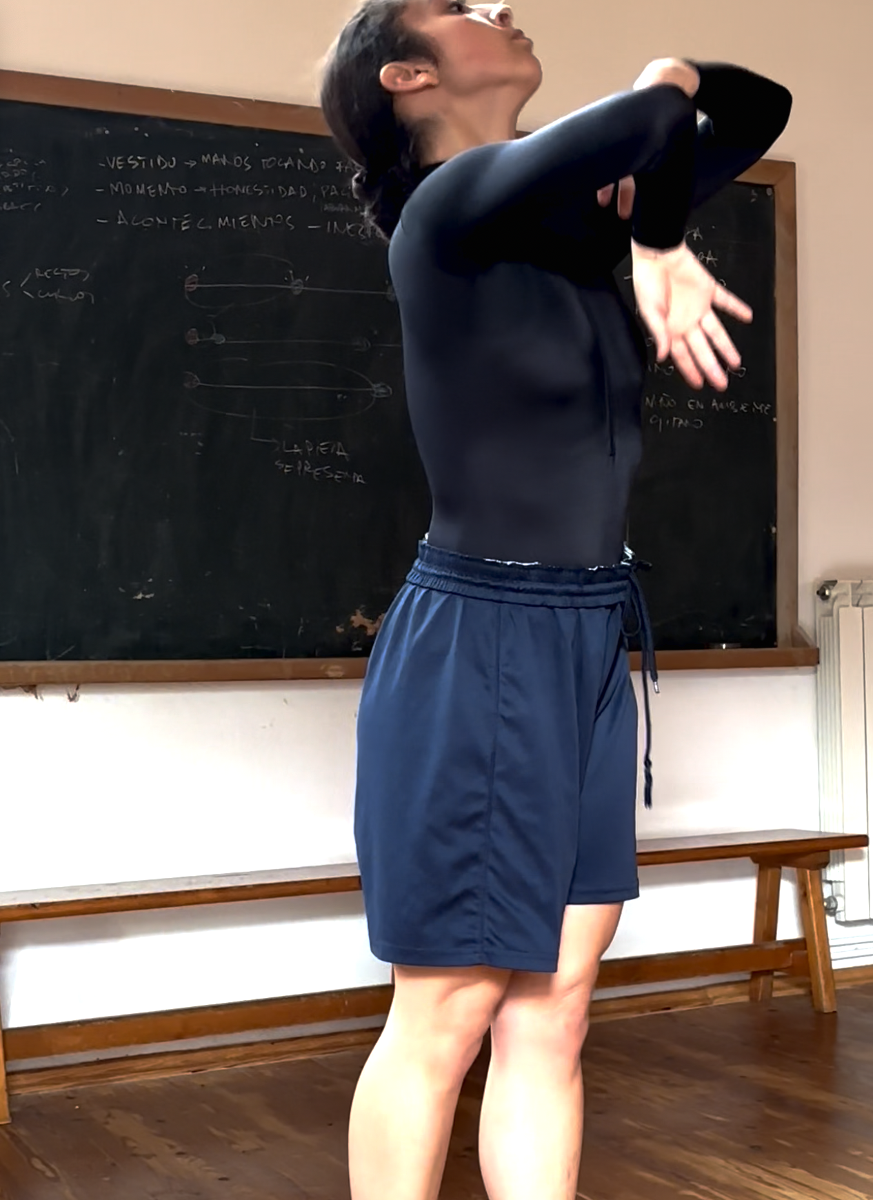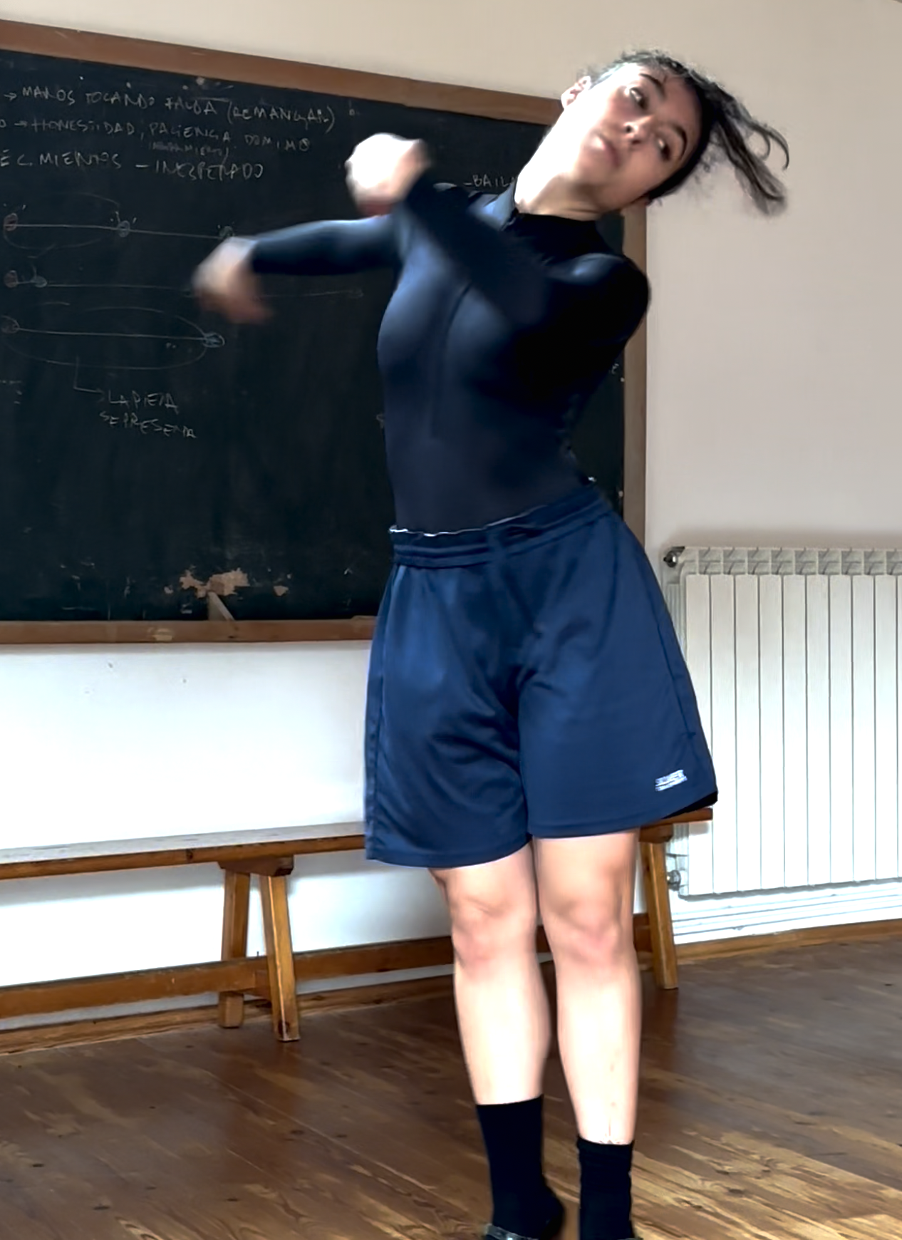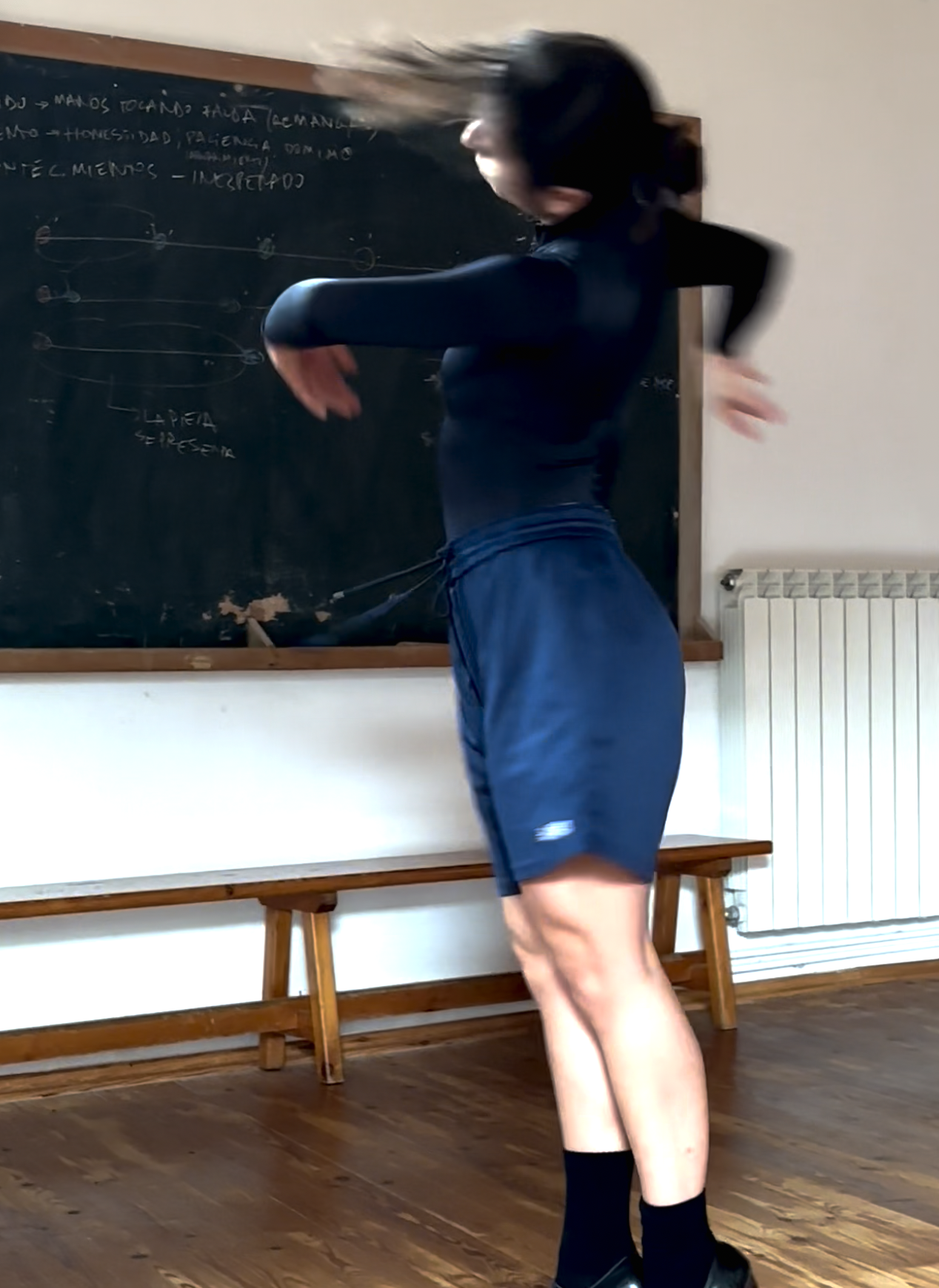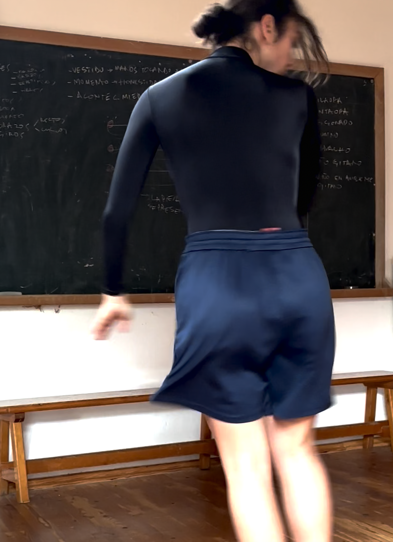 La bailaora Ana Almagro se junta con el director creativo de ELAMOR Eduardo Rivero para crear un solo de flamenco a partir de capas heterodoxas de tiempo y de lenguajes: “he intentado plasmar desde lo que sí es concreto como el recorrido, la forma y el espacio sonoro. Por un lado, en la primera parte la colocación de los brazos, el sonido constante de los pies, como si de una tabla de pies se tratase y las torsiones del cuerpo producen una sensación hermética, repetitiva e inquietante que rompe con una caída al suelo, esa caída es el principio de otro lugar más frágil, más humano ya que lo único que dirige y tiene peso en ese momento son las dos voces. A partir de una voz cruda se van uniendodistintascapasdesonidoymovimien- toque una pasando por lo ya habitado de una forma mucho más liberada, sin ataduras ni bús- queda de la imagen si no hacia las sensaciones hasta terminar la pieza en un lugar tranquilo, de calma” Ana Almagro.