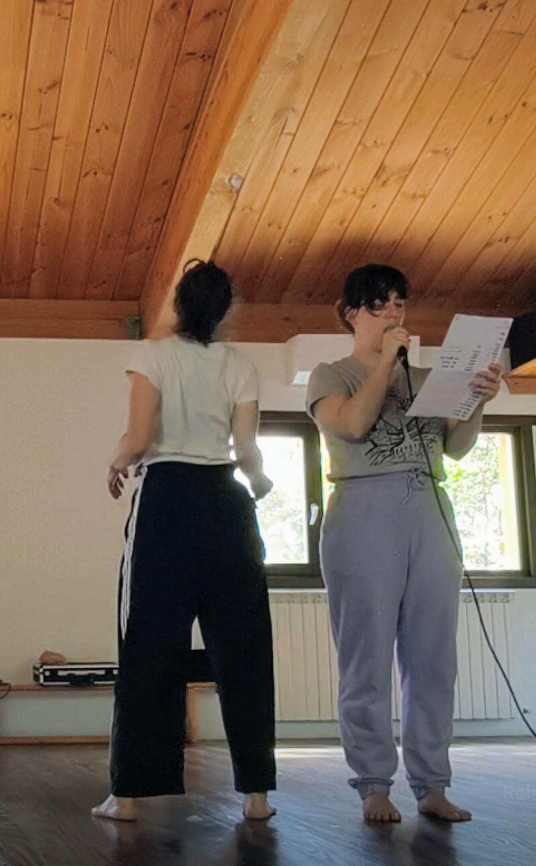 A partir de la repetición de una palabra —“madre”— la pieza se adentra en sus capas visibles e invisibles, hasta despojarla de significado y devolverla a su vibración primaria. Cuando el lenguaje se agota, emerge la materia: voz y movimiento oscilan, se ondulan y se atraviesan en un pulso compartido. ¿Qué significa traducir una palabra en cuerpo? ¿Qué implica devolverla a la materia una y otra vez?